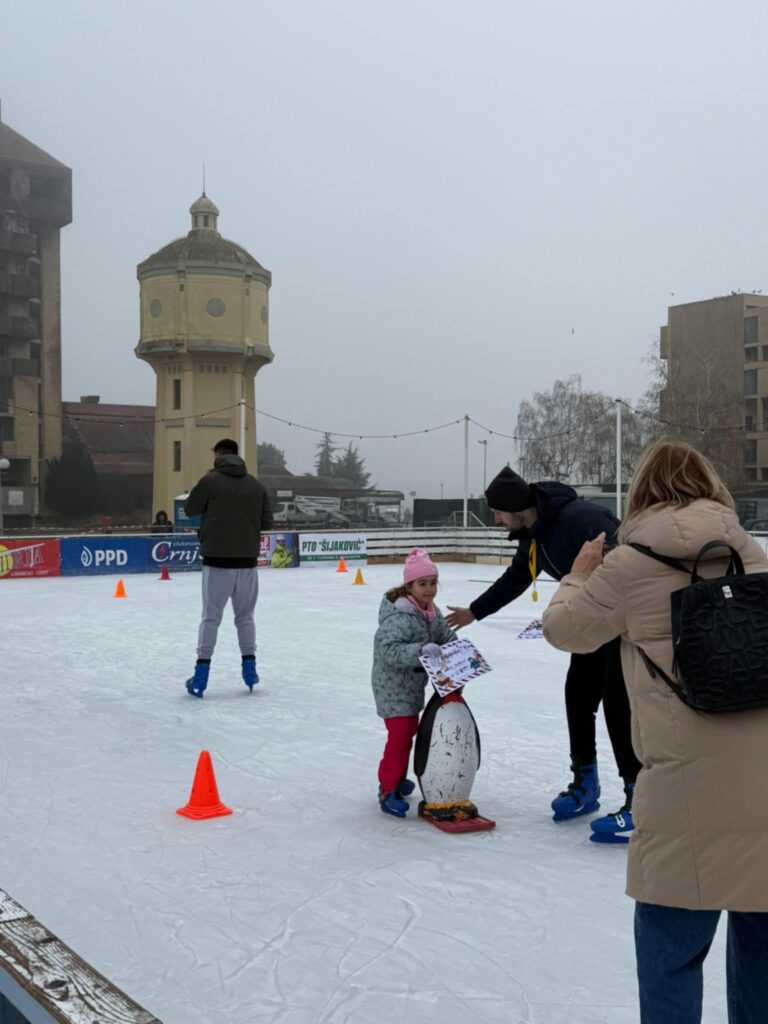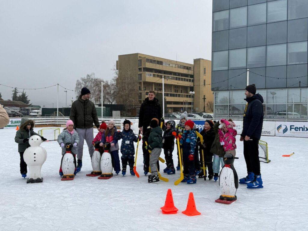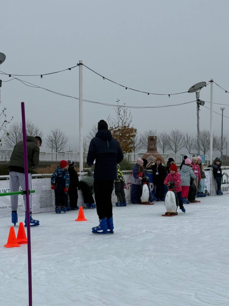 Uz pomoć stručnih voditelja i puno smijeha, djeca su savladavala osnove klizanja, učila održavati ravnotežu, kretati se uz pomoć pingvina–pomagala te sudjelovala u zabavnim igrama na ledu.